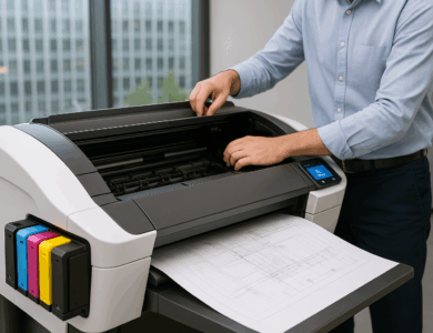 يعتمد على طباعة المخططات والمستندات الملونة كبيرة الحجم.