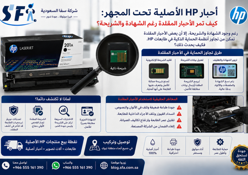 أحبار HP الأصلية تحت المجهر: كيف تمر الأحبار المقلدة رغم الشهادة والشريحة؟